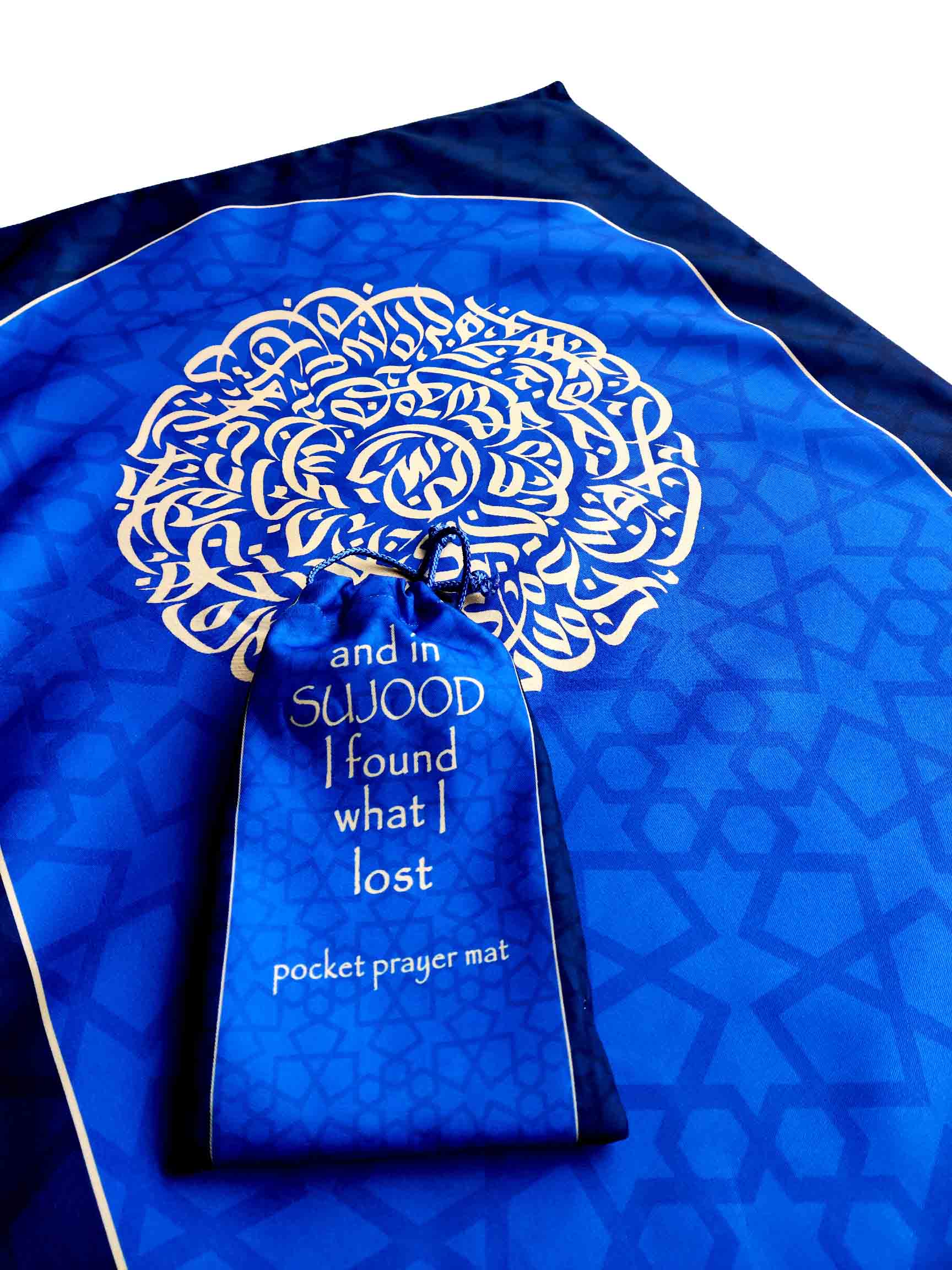 Pocket prayer mat - Your beautiful companion for prayer on the go! These are light weight, soft and foldable, designed to be carried anywhere and everywhere with you. Available in a gorgeous pattern digitally printed on twill fabric, it also comes in a coordinating drawstring pouch making it easy to carry or fit into any bag.