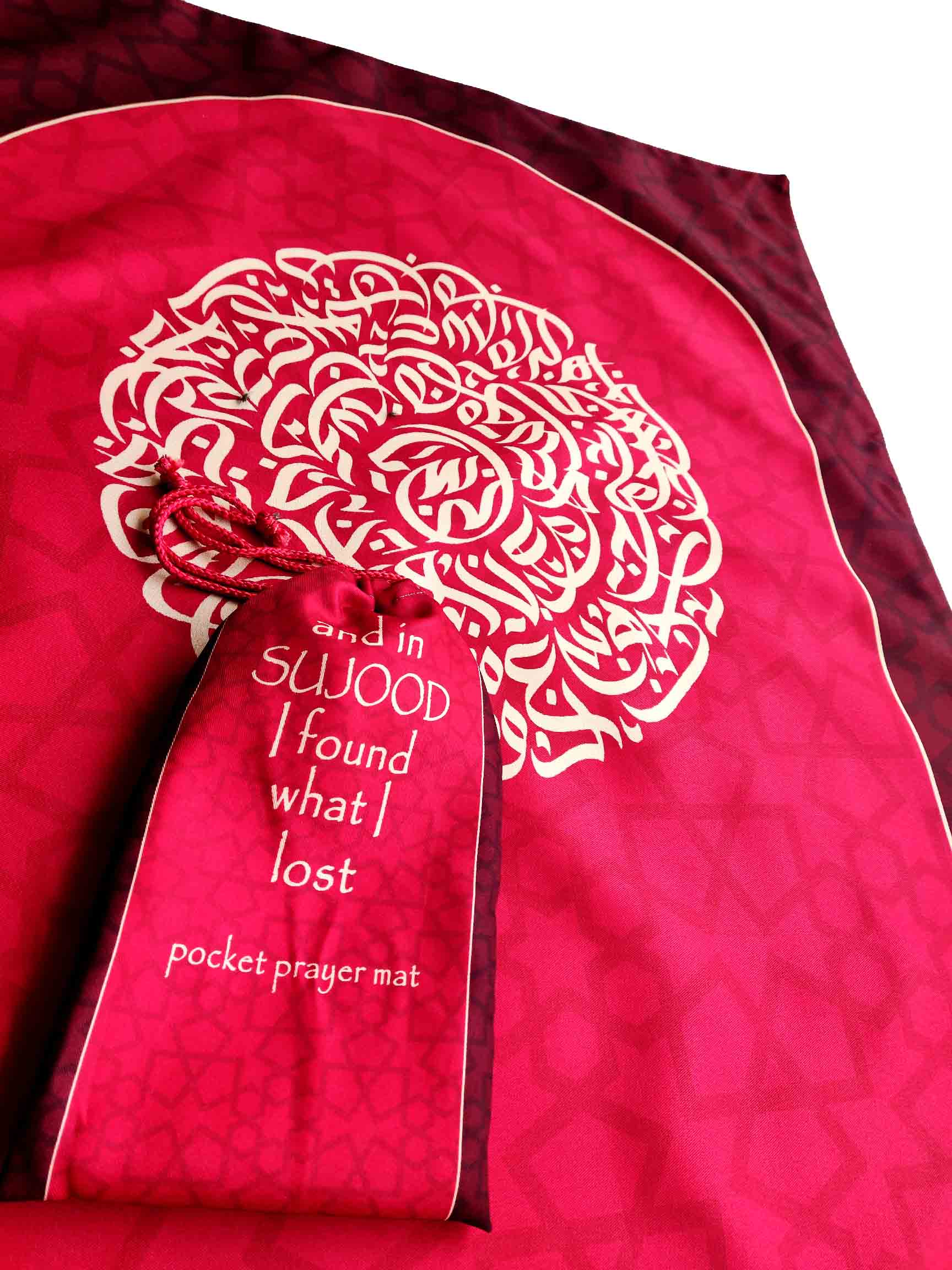 Pocket prayer mat - Your beautiful companion for prayer on the go! These are light weight, soft and foldable, designed to be carried anywhere and everywhere with you. Available in a gorgeous pattern digitally printed on twill fabric, it also comes in a coordinating drawstring pouch making it easy to carry or fit into any bag.