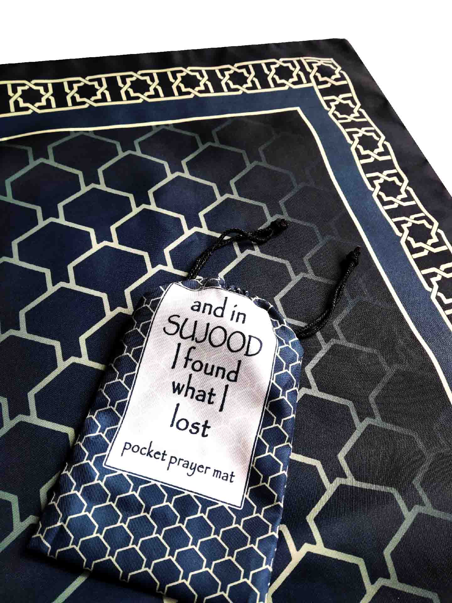 Pocket prayer mat - Your beautiful companion for prayer on the go! These are light weight, soft and foldable, designed to be carried anywhere and everywhere with you. Available in a gorgeous pattern digitally printed on twill fabric, it also comes in a coordinating drawstring pouch making it easy to carry or fit into any bag.