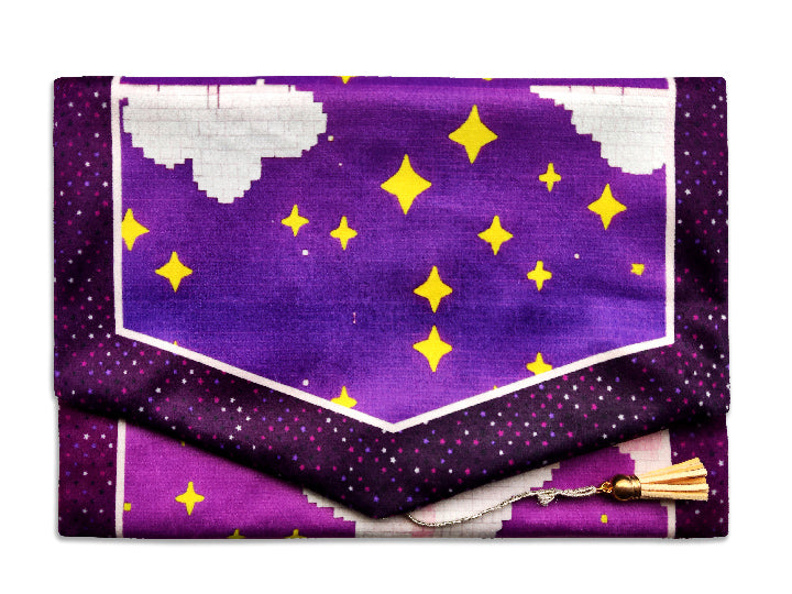 The premium quality suede velvet cover slides over the hardback cover of your Quran. A long ribbon that you can tie holds it shut when not in use.