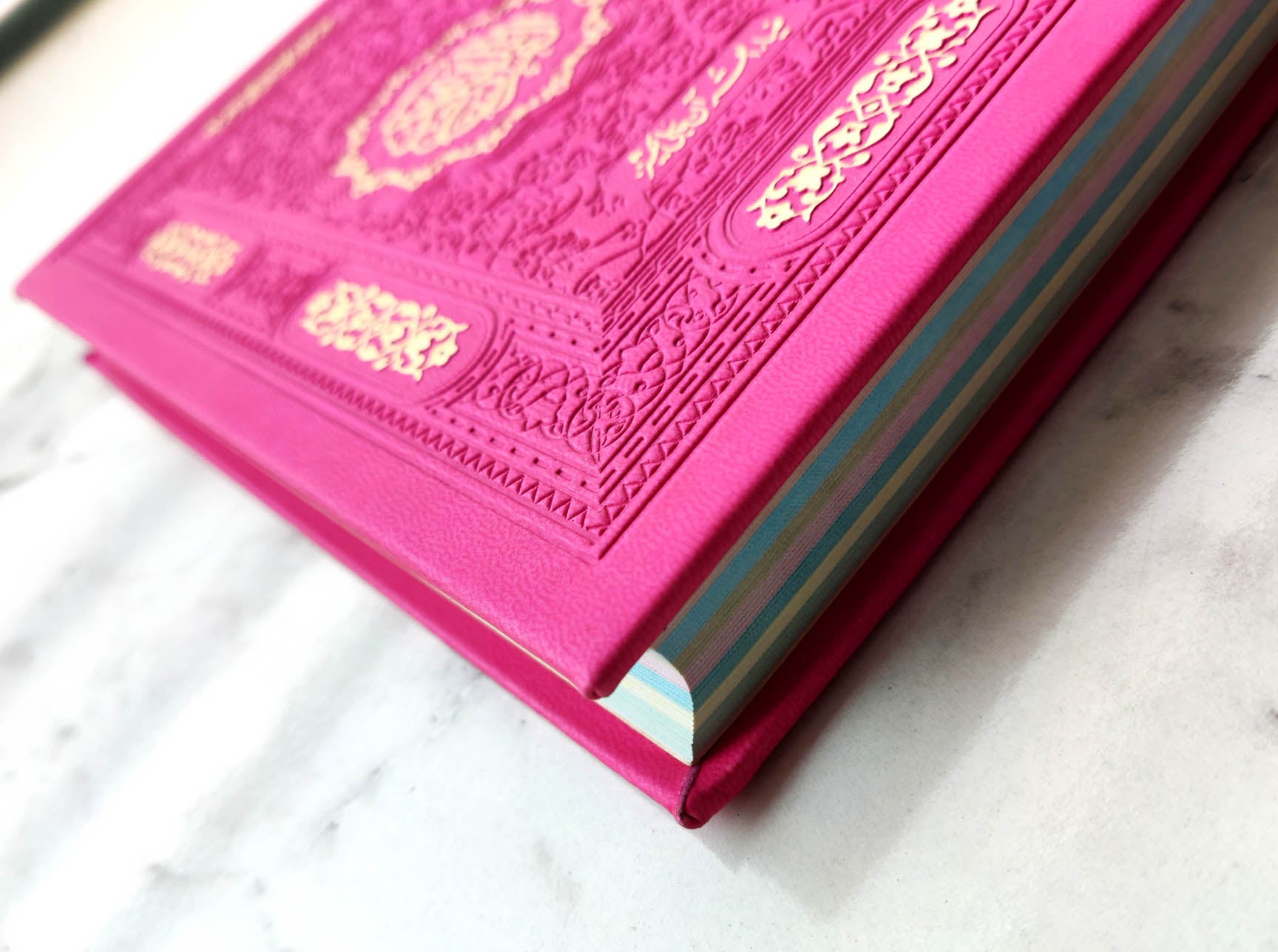 Beautiful rainbow Qurans, sure to attract kids and adults