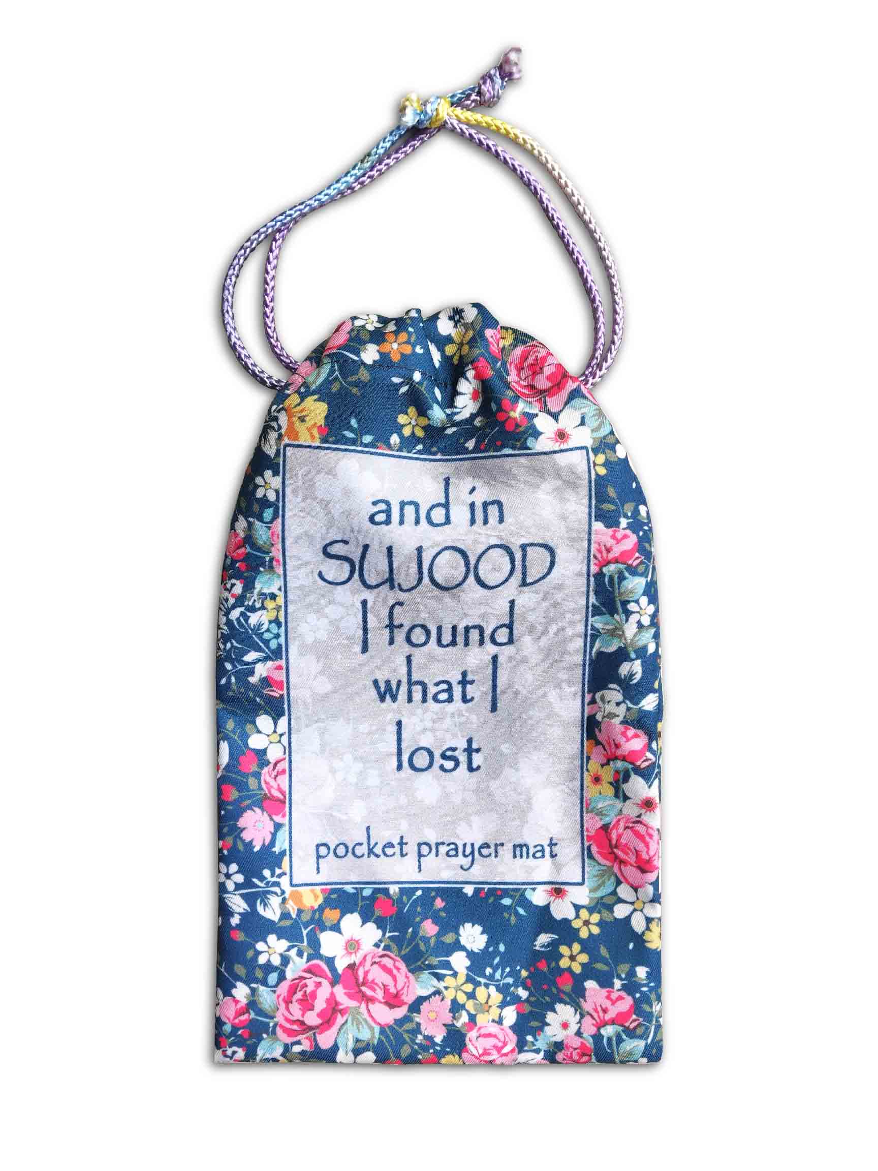 Pocket prayer mat - Your beautiful companion for prayer on the go! These are light weight, soft and foldable, designed to be carried anywhere and everywhere with you. Available in a gorgeous pattern digitally printed on twill fabric, it also comes in a coordinating drawstring pouch making it easy to carry or fit into any bag.