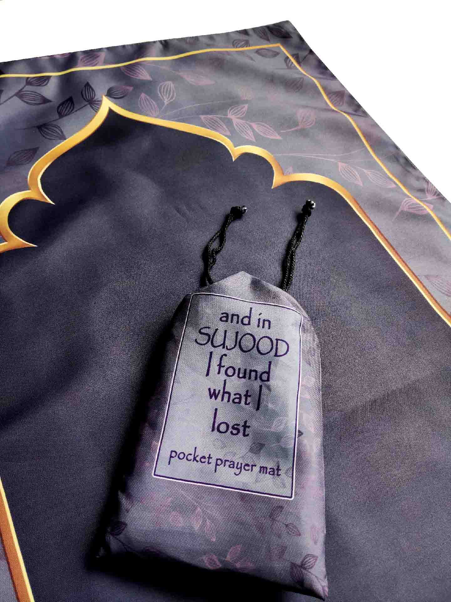 Pocket prayer mat - Your beautiful companion for prayer on the go! These are light weight, soft and foldable, designed to be carried anywhere and everywhere with you. Available in a gorgeous pattern digitally printed on twill fabric, it also comes in a coordinating drawstring pouch making it easy to carry or fit into any bag.
