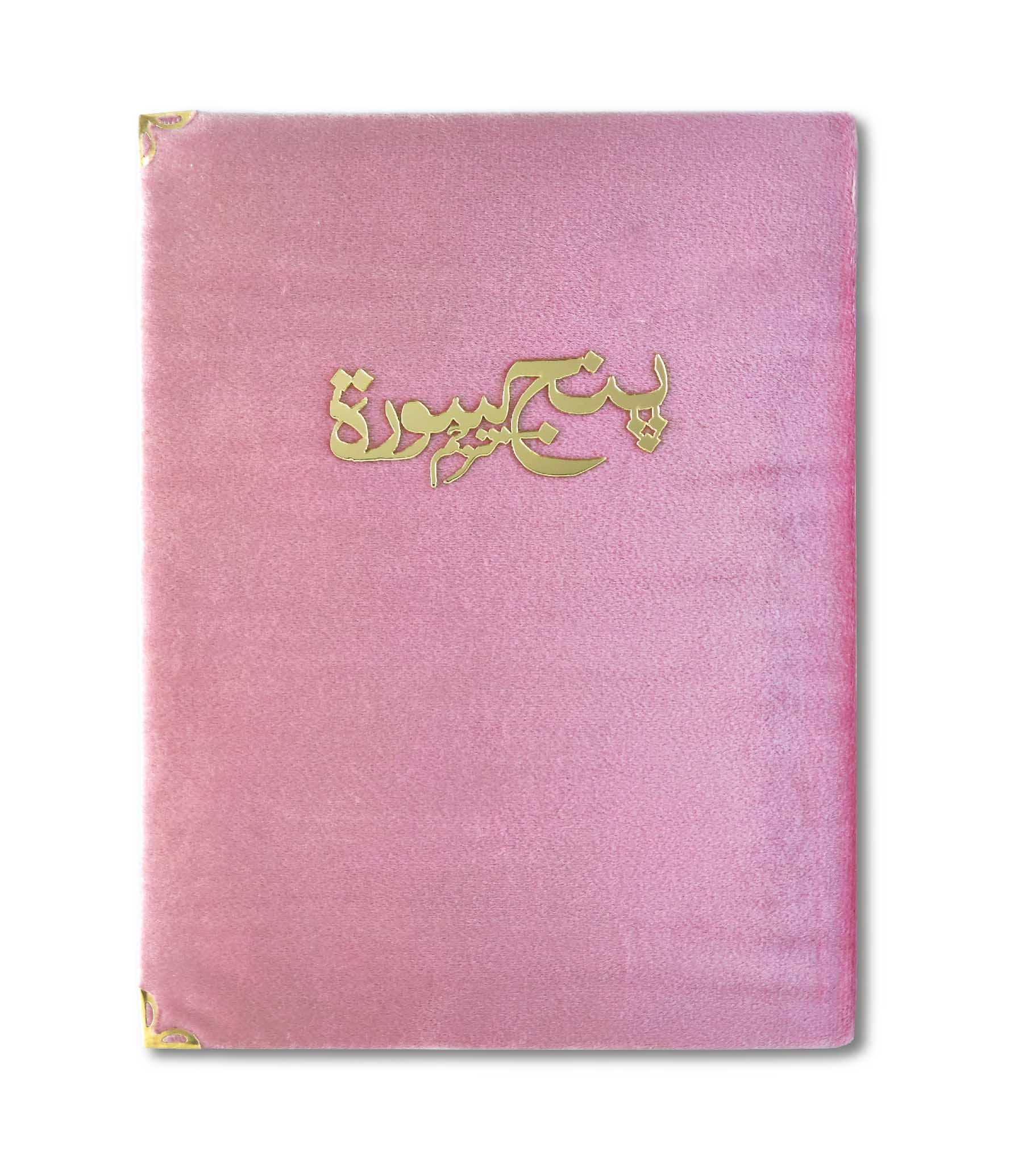 Velvet covered Panj Surah with Urdu translation, is also adorned with a beautiful design on top. It can be paired perfectly with Art Beat Creations prayer mats, making it a perfect choice to gift your loved ones!
