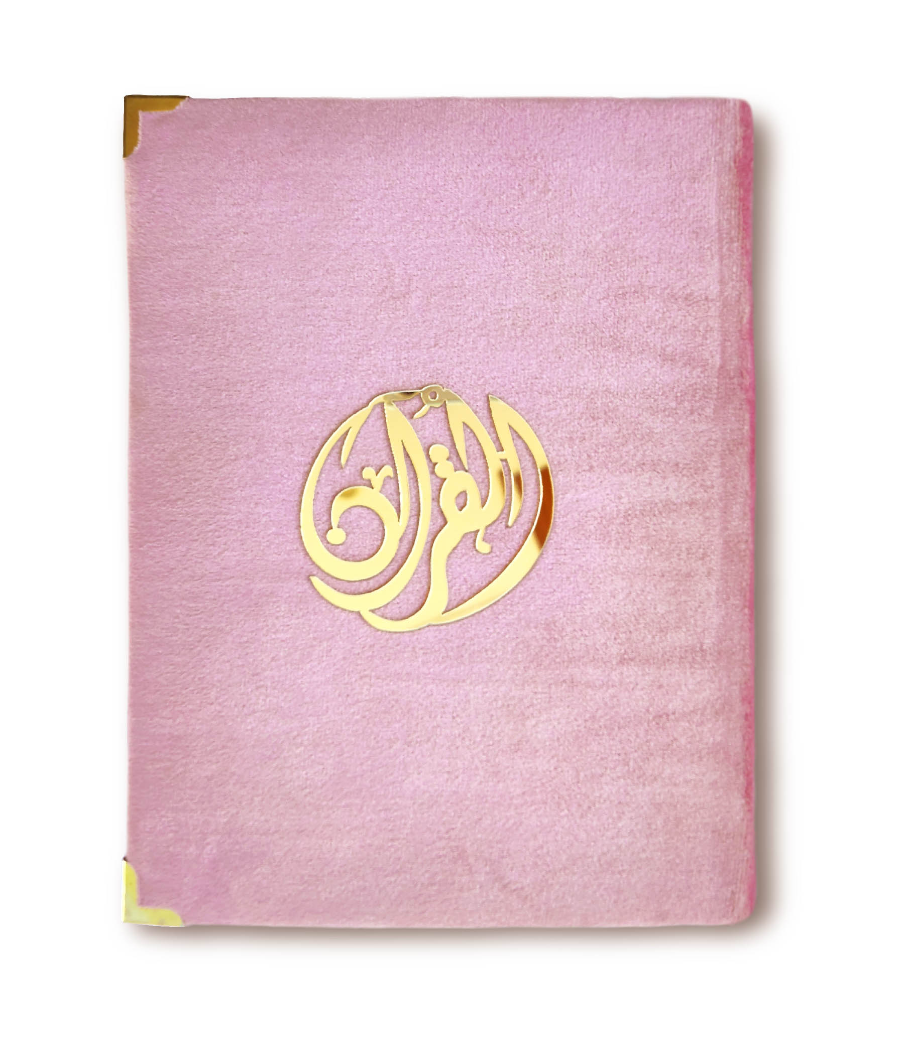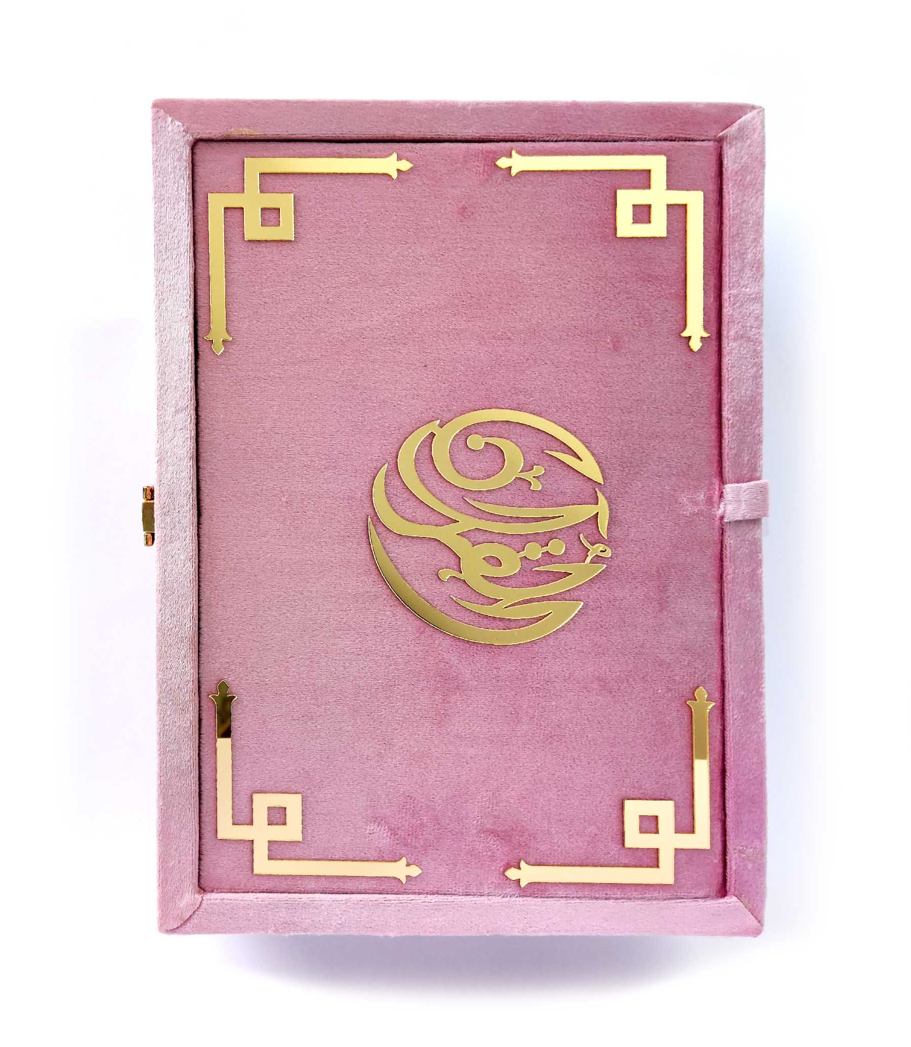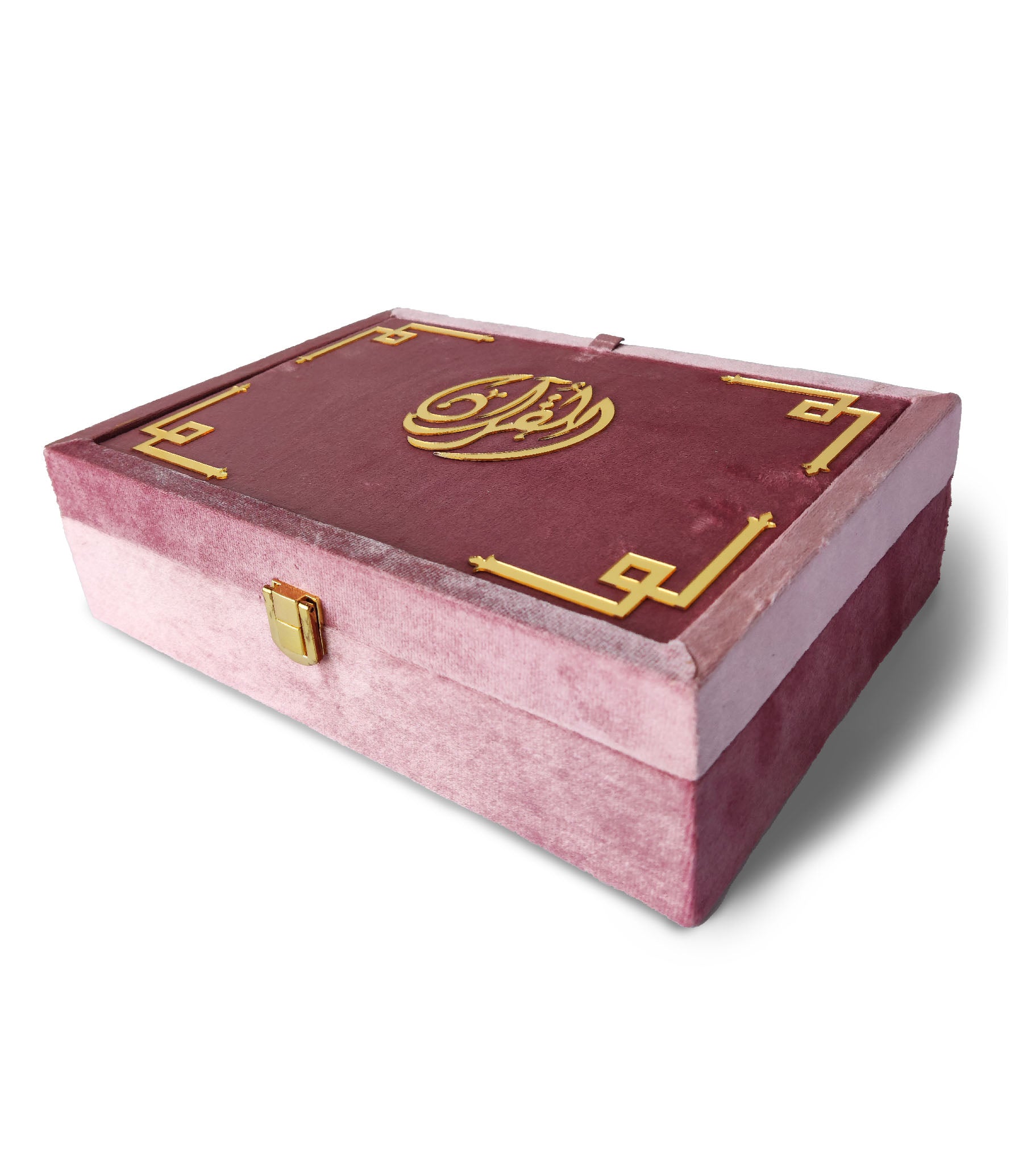 Light Pink Velvet Rainbow Quran Set (with Box Stand)