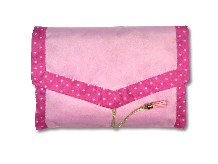 The premium quality suede velvet cover slides over the hardback cover of your Quran. A long ribbon that you can tie holds it shut when not in use.