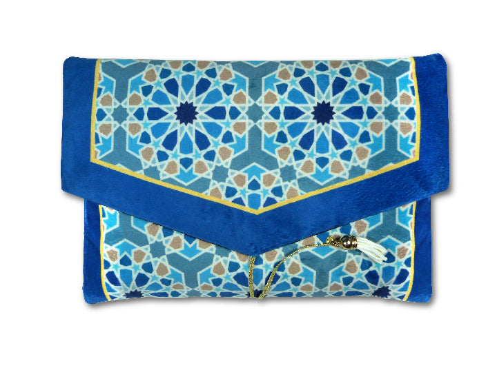 The premium quality suede velvet cover slides over the hardback cover of your Quran. A long ribbon that you can tie holds it shut when not in use.