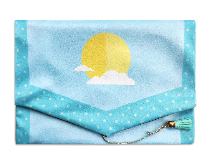 The premium quality suede velvet cover slides over the hardback cover of your Quran. A long ribbon that you can tie holds it shut when not in use.