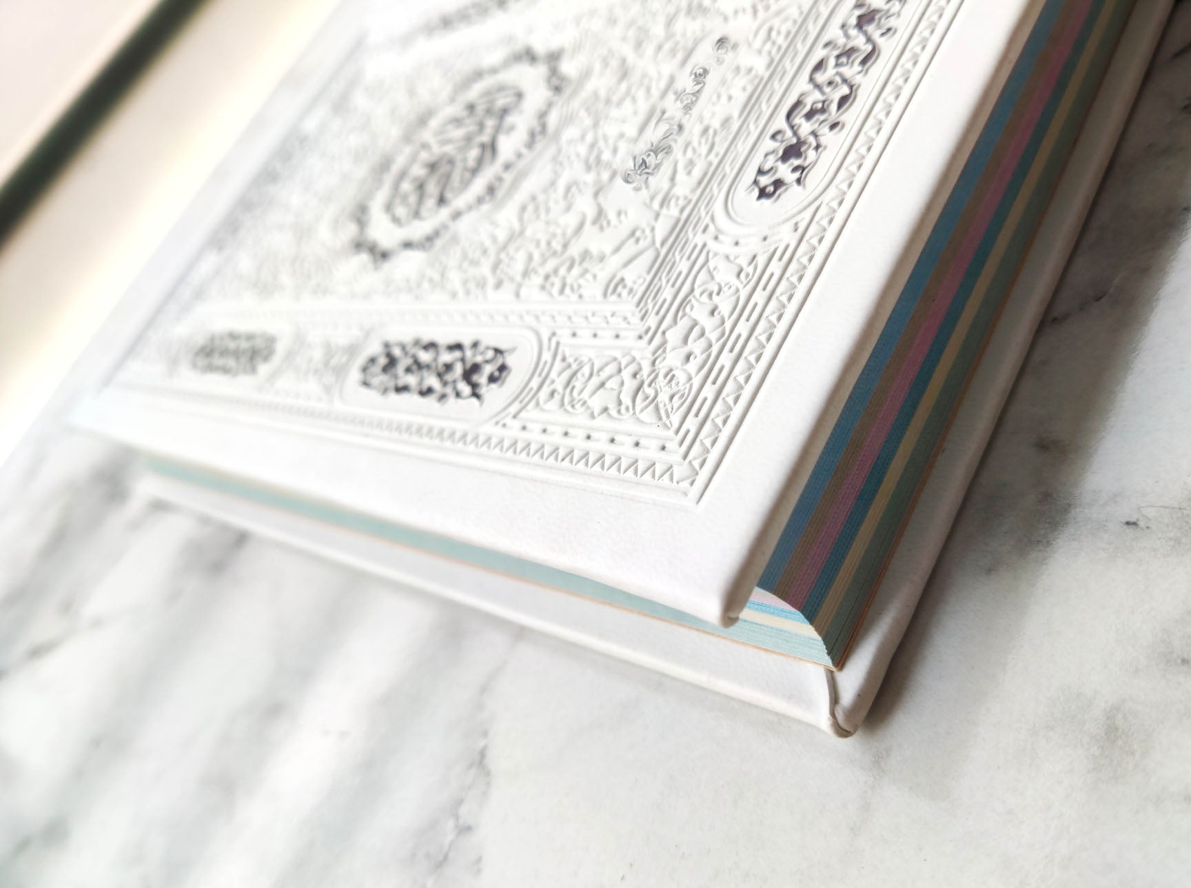 Beautiful rainbow Qurans, sure to attract kids and adults