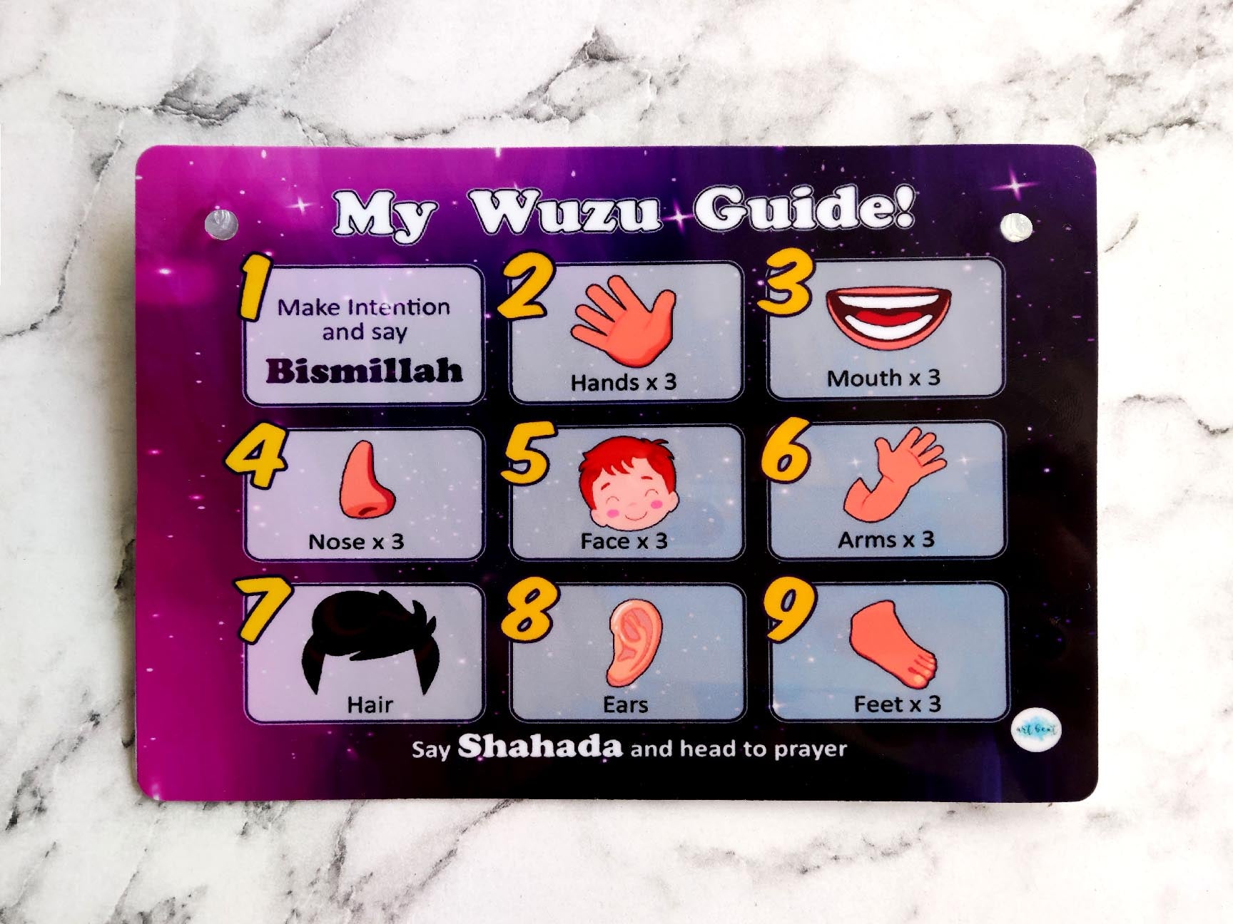 Wuzu Guide for Kids is a useful chart breaking down the steps of wuzu through colorful illustrations. It has simple instructions that kids can easily follow, and the best part is, it comes with 2 suction cups so it can be easily displayed on a mirror or bathroom tile as reminder.